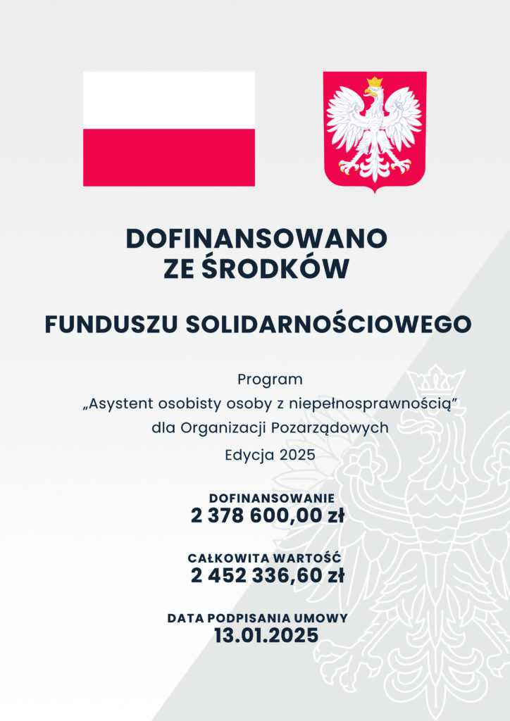 z przyjemnością informujemy o rozpoczęciu realizacji Programu „Asystent osobisty osoby z niepełnosprawnością” – edycja 2025. Zachęcamy do zapoznania się z założeniami i treścią programu, znajdziecie go tutaj: